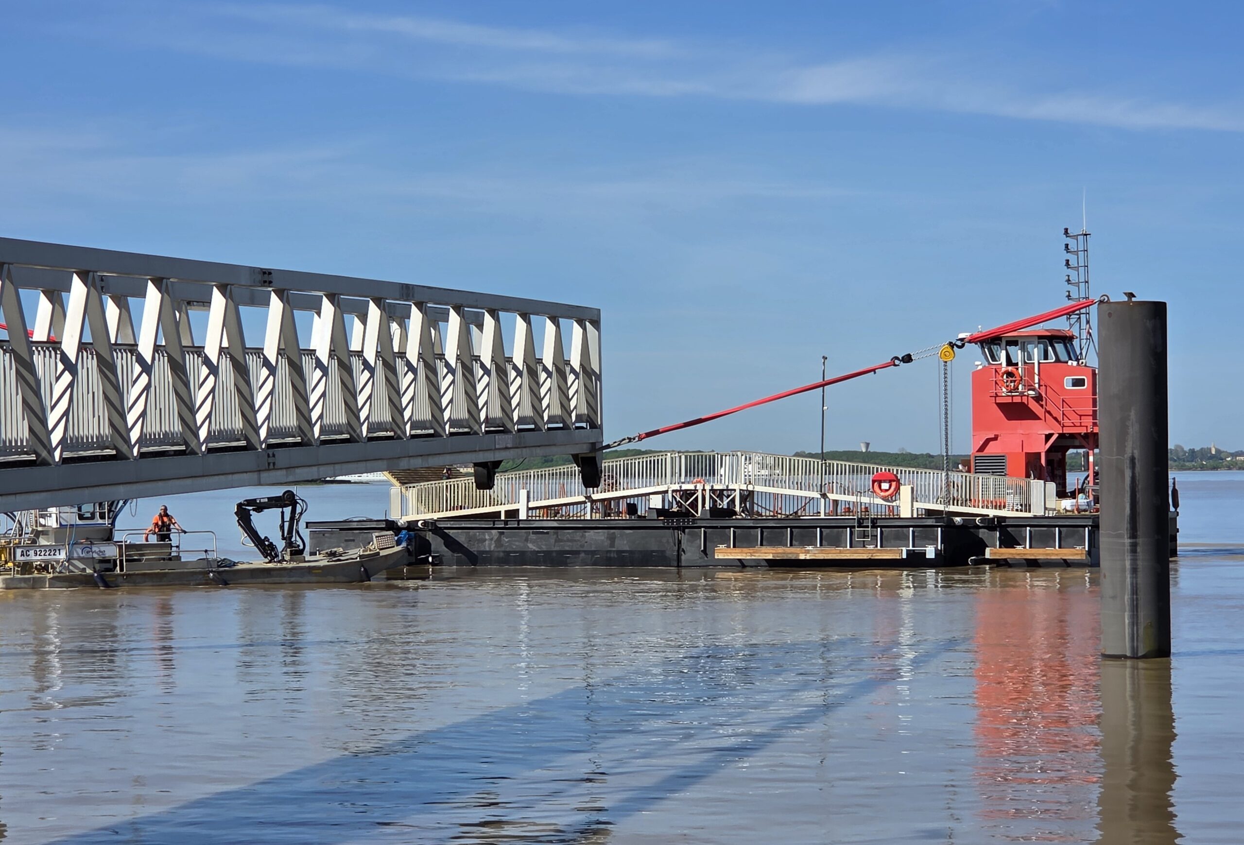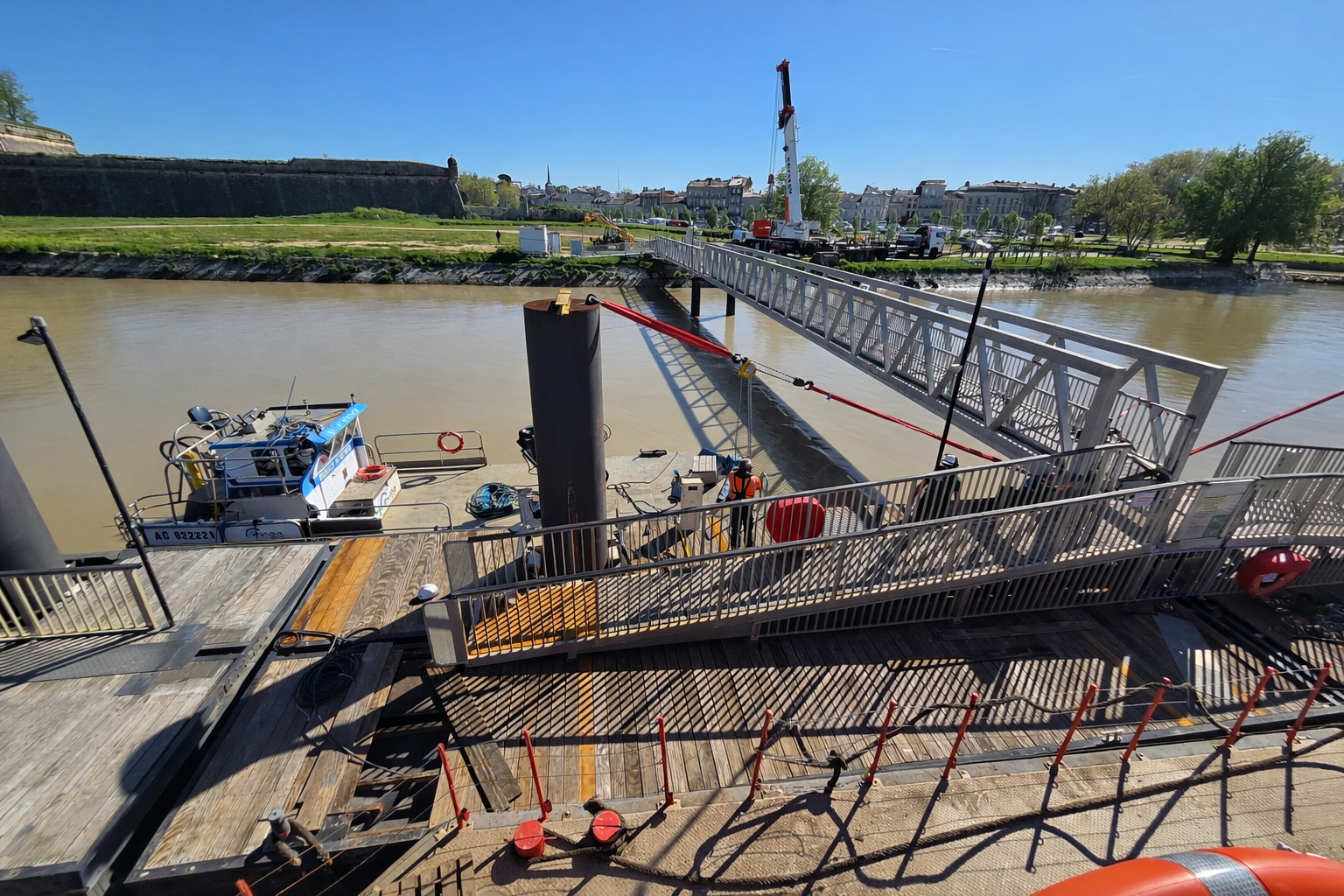 À la suite des dégâts causés par les tempêtes Nils et Pedro en février 2026 sur le ponton de la halte nautique, dont la Communauté de communes de Blaye (CCB) est propriétaire, des travaux de réparations ont été engagés. Après 5 semaines d’intervention sur site par l’entreprise EVIAA Marine, une étape majeure a été franchie le mercredi 8 avril : la remise à l’eau de l’équipement.