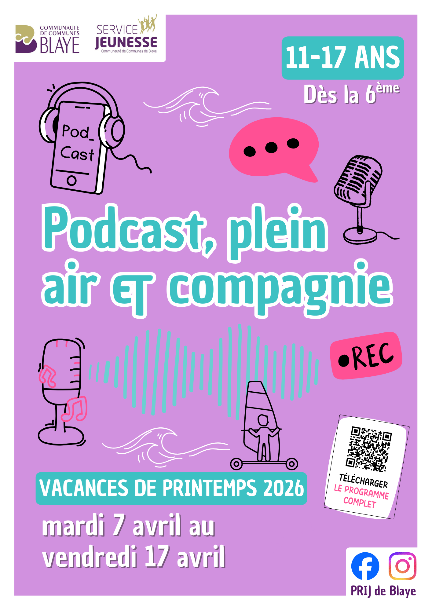 Programme PRIJ – Vacances de printemps 2026