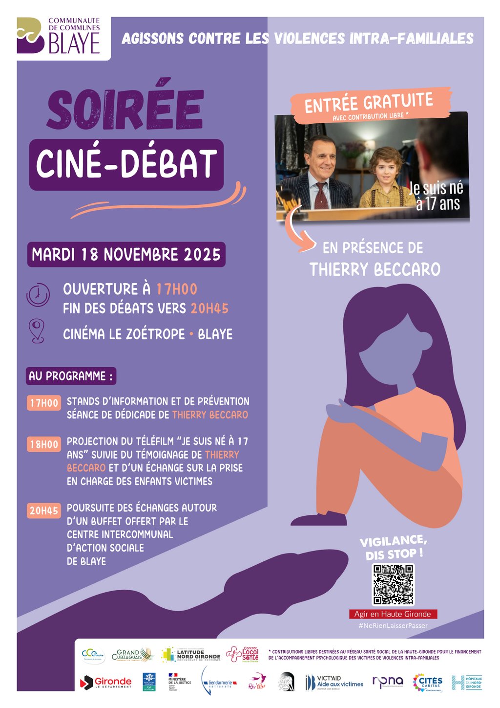 💪👶💜 Ensemble, brisons le silence ! Mardi 18 novembre au cinéma Le Zoétrope à Blaye, la Communauté de communes de Blaye et le Contrat Local de Santé de la Haute Gironde organisent une journée d’information et de mobilisation contre les violences intra-familiales, à destination des professionnels 👩⚕️👮♀️ et du grand public 🫶.
