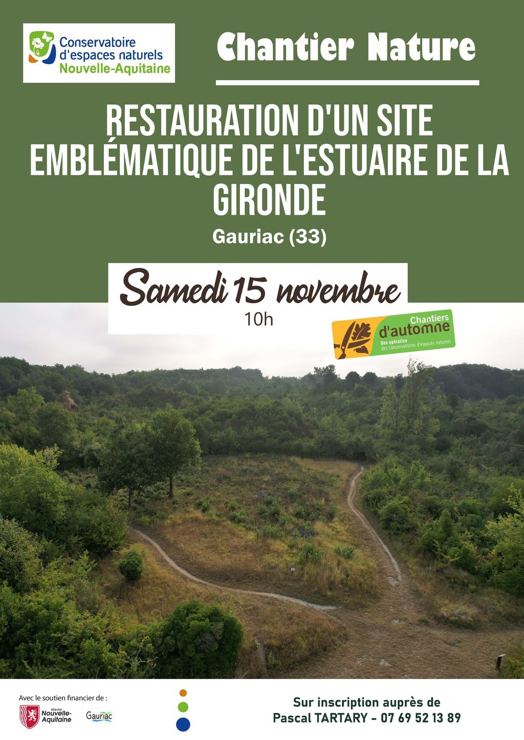 Inscription obligatoire : Pascal TARTARY – 07 69 52 13 89 – p.tartary@cen-na.org