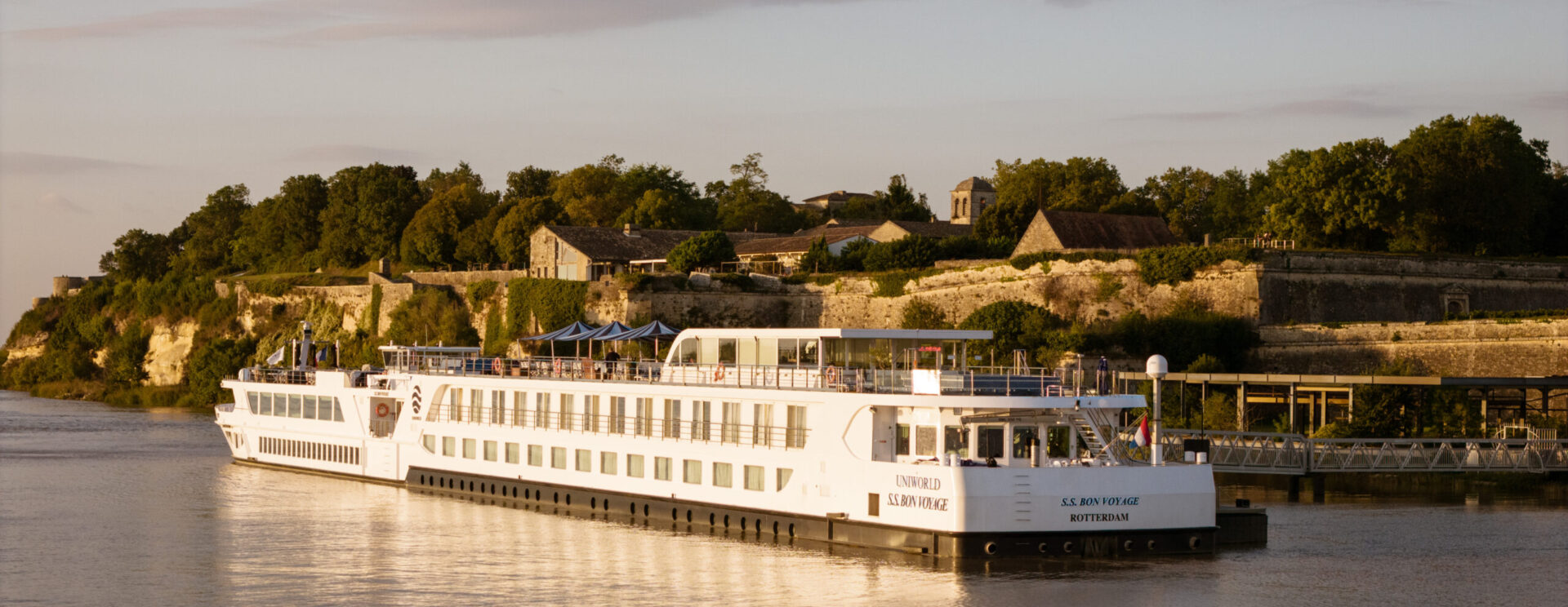 L’implantation de 2 ducs d’Albe complémentaires en aval de la halte permettent dorénavant l’amarrage à couple de deux bateaux de croisière. Le remplacement du ponton amont par un ponton neuf et disposant de fronts d’accostage côté fleuve et côté terre permet de renforcer parallèlement les capacités d’accueil de bateaux de croisière à la journée et d’envisager l’arrivée d’une future navette fluviale.